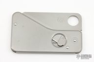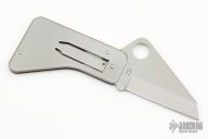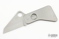 This Spydercard by Spyderco features a bead blasted wharncliffe blade with thumbhole and partially serrated edge. The handle has a bead blasted stainless steel frame. Nice lockup and blade seating. Has some light scuffs, and a couple oxidation spots. Excellent condition otherwise.