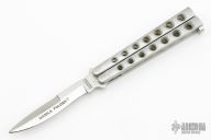 This Manila Folder is a 1980's classic Taylor/Seto Balisong with aluminum handles. Has a satin finished blade with a sharpened top edge. Has scuffs and scratches, poor condition.