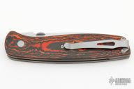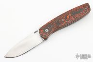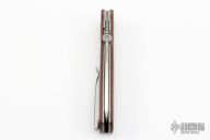 This Bobcat by Marty Young features a hand rub satin finished blade with thumbdisc and notched thumbrest.  The handle features Mars Valley Fat Carbon scales, bead blasted titanium liners, carbon fiber backspacer, and a bead blasted tip up pocket clip. Comes with a zippered case and COA. New from maker.