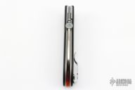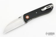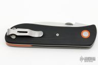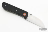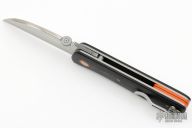 This Left Handed Toecutter by Marty Young features a hand rub satin finished blade with thumbdisc and notched thumbrest.  The handle features black G-10 scales with orange G-10 pivot collars, bead blasted titanium liners, orange/black G-10 backspacer, and a tip up pocket clip. Comes with a zippered case and COA. New from maker.
