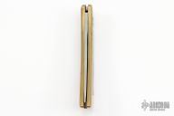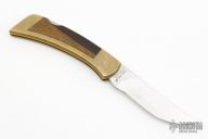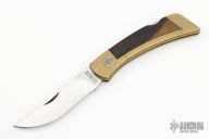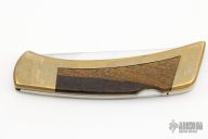 This large Folding Sportsman by Gerber features a polished blade with nail nick. The handle has a brass frame with wood inlays. The handle has a Harley Davidson Motor Cycles crest inlaid in the handle. Has scratches, otherwise good condition.