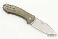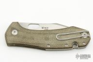 The Grand is a full-size knife, and the newest member of the GiantMouse family. Both bold and brawny, the Grand is a design collaboration between Danish knife makers Jesper Voxnaes and Jens Anso that features recognizable design cues. Its premium Elmax steel blade is large and takes charge with a supremely sharp edge. The knife gets strength from the nested steel liners and a single-piece backspacer. Sculpted green canvas micarta handle scales provide a desired surface that is grippy and comfortable in hand. The deep-carry reversible wire clip keeps the knife securely in your pocket, but is easy to get to when you need it. Whether every day at the office, or on a camping trip, the Grand will serve you well.