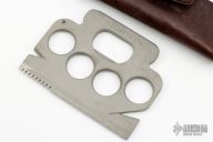 The present invention relates to a survival hand weapon of the nonfirearm type comprising an elongated blade having a beveled cutting edge formed along the forward edge thereof, a plurality of finger receiving openings extending from the edge of the elongated blade opposite the cutting edge for receiving a plurality of fingers from the users hand, and a palm rest extending fromthe plurality of finger openings for extending between the fingers and the palm of the users hand which acts to transfer the shock associated with a particular blow to the palm of the users hand.