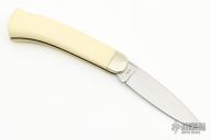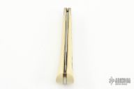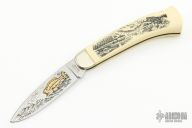 The Franklin Mint Wildlife Series was manufactured by Boker. This one has a drop point stonewashed blade with an image of a largemouth bass. The handle has nickel silver bolsters, ivory paper micarta scales with scrimshaw, brass liners and stainless steel backspacer. Excellent condition.