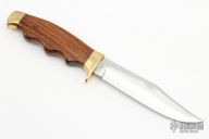 The Franklin Mint Wildlife Series was manufactured by Boker. This one has a clip point mirror polished blade with an image of a moose, .176" blade stock and 1.015" blade depth, hidden tang construction. The handle has a brass guard and butt, wood grip with silver moose escutcheon. Excellent condition.