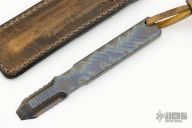 This Prybar by Brian Efros features anodized titanium construction with milling patterns. Comes with a Greg Stevens Design leather sheath and lanyard. Excellent condition.