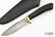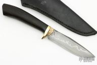 This Slim Hunter by Last Knives features a hand forged hand rub satin finished Daido Yk4 Steel blade with a nice hamon, .194" blade stock and .990" blade depth, hidden tang construction. The handle has a brass guard and a Macassar Ebony wood grip. Comes with a black leather sheath and COA. New from maker.