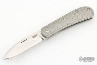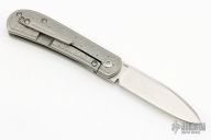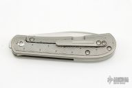 This Trapper Front Flipper by Enrique Pena features a satin finished blade with a front flipper and notched thumbrest. The handle has a titanium frame with EDC Texture, matching backspacer and tip up pocket clip. Includes a Pena X-Series padded box. Excellent Condition.
