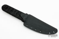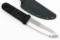 This Fugu features a tumbled blade with a sharpened top edge and a hidden tang construction. .186" Blade Stock. 1.268" Blade Depth. The handle features a black Tsuka Ito and hemp cord under wrap and a hammered copper menuki. New from maker!