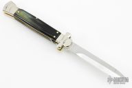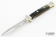 Angelo Campolin Sr. was born in 1923 in Maniago, Italy. He worked on perfecting his knife making skills before WWII and at this time made his first switchblades. After the war, in 1947 he started his company and made 30 stilettos with the marking “Angelo Campolin”. In the 1970’s Angelo’s son Gianni started to work in the company and they were specializing in folding hunting knives and also manual folding stilettos for the Robert Klaas company in Solingen Germany with their Kissing Cranes mark. In 2002 American switchblade collectors Dan Fuller, Brad West, and Tim Zinser were visiting Maniago and enjoying a few glasses of wine in a bar with Angelo Jr. and Gianni. The discussion was about a new name for some knife projects they wanted to pursue. It was Brad West that suggested the tang stamp should be AGA, for Angelo, Gianni, Angelo, thus representing three generations in the knife making business. The Campolins liked it and it stuck. In the beginning it was just a few items, but grew to the point where now there are 12 models and different scale options. The goal has been to offer quality switchblades using the old methods and traditions. Being a collector himself, Angelo Jr. knows what others like. The company headquarters has moved to Austria with production still in the original Maniago shop, as well as the others in Maniago that produce the knives for A.G.A. Campolin.