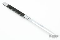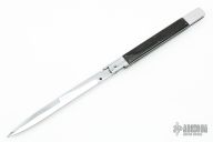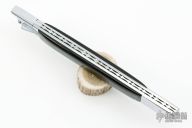 This Picklock Auto by Agasi Hambartsumian of Armenian Doctor Knives features a mirror polished bayonet ground blade with a false top edge. The handle has a polished stainless steel frame with fileworked stainless steel backspacer, buffalo horn scales with brass pins. New from maker.