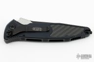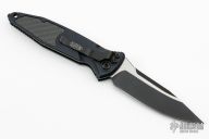 This Socom Elite Auto has a black blade with satin flats, notched thumbrest. Black aluminum handle with carbon fiber inserts. Stainless steel clip, tip down carry. Glass breaker. Dated 05/2019 and s/n 3366. Has some light scuffs, and scratches, couple dings, great condition otherwise.