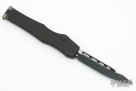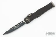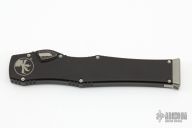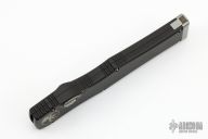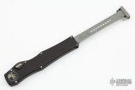 This Halo VI by Microtech knives features a black drop point blade with fullers and satin flats. The handle has a black aluminum frame with blasted stainless steel hardware and charging handle. Dated 04/2018. Comes with microtech box. Has a couple light scuffs on the frame. Excellent condition otherwise.