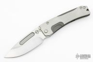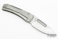 This Slim Midi Marauder from Medford Knife and Tool features a stonewashed drop point blade with thumb stud and recess. The handle has a milled titanium frame with tip up clip over a satin finished stainless steel spacers. Excellent detent, lockup, and seating. Original box, papers and hard case. Excellent condition