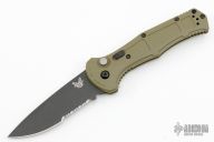 An explosive design, bound to take the battlefield by storm. The 9070SBK-1 Claymore is a slender push-button powerhouse, packed full of hidden features and inspired by one of the most notorious directional mines. Incorporating this air-hardening tool steel to Benchmade’s portfolio of premium materials, the Claymore blade has been crafted from CPM-D2 to provide ample toughness and edge retention. Manufactured in the USA, the Claymore has set the standard for closed break strength making this Benchmade's toughest folder to date. Comes with original box and papers. Excellent condition.