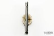 Lightweight and compact at 4.5oz (128g), with the highest grade materials, the OZF 001 is comfortable and unassuming to carry while still providing over 4” (105mm) of cutting edge. A single-piece milled carbon fiber handle, mated to a titanium frame-lock, make for a strong yet lightweight design. Bohler M390 martensitic steel provides a tough blade with excellent edge retention and corrosion resistance. The result is a premium daily carry folder with field-proven tactical DNA. The culmination of over a decade of folder design. Excellent condition. Blade Material: Bohler M390 Blade Length: 4.3” | 110mm Cutting Edge: 4.13” | 105mm Blade Width: 1” | 24mm Blade Thickness: 0.15” | 3.8mm Blade Shape: Osoraku Zukuri Finish: Satin Hardness: 60-61 RC Handle Material: Single piece milled carbon Fiber Handle Length: 5.4” | 137mm Handle Thickness: 0.47” | 12mm Handle Width: 1.34” | 34mm Overall length: 9.7” | 247.4mm Frame: Titanium Opening: Flipper with IKBS Clip: Stainless steel, deep carry Lock: Frame lock Weight: 4.5oz | 128g Release: August 2018 Produced by: LionSteel in Italy Design: Christopher Williams. Has a light scratch on the clip, otherwise excellent condition. Comes with original box and papers.