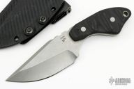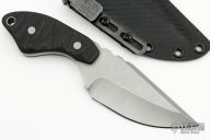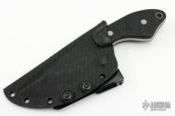 This Custom Fixed Blade by Martin Olexey features a tumble finished blade with swedge and notched thumbrest, .210" blade stock and 1.673" blade depth. The handle is comprised of sculpted black G10 and rubber laminated scales with red liners over full tang construction, lanyard hole. Includes kydex sheath with Ulti-Clip. Excellent condition.