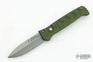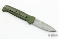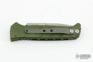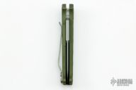 This Pocket Militia (#082) side opening auto has a bead blasted blade with false top edge. "DDC" stamped on B-side. Handle is green anodized aluminum with a bead blasted titanium tip up clip. Typical Dalton strong action and lockup.  Has a light scratch on the pocket clip otherwise the knife is in excellent condition.