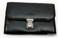 Holds 7 knives that are no more than 8" closed. Comes with a key. Excellent condition. 9"x6" closed.