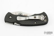 This Rhino by Spyderco is a Reinhold design, it features a satin finished blade with thumbhole. The handle has carbon fiber scales with an inlaid stainless steel liner that releases from the spine, tip up reversible stainless steel clip. Comes with original box and papers. Excellent condition.