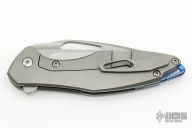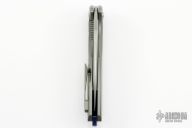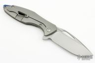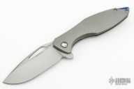 This Arius by Koenig knives features a bead blast finish blade with satin flats, thumbhole and flipper. The handle has a bead blasted titanium frame with a titanium tip up clip, anodized titanium backspacer. Has ceramic bearings and a ceramic detent ball. Nice detent, lockup and blade seating. Comes with original box and COA Feb 22 2019. Excellent condition.