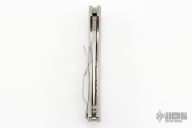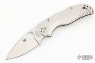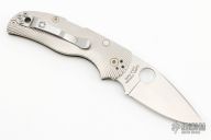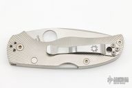 The Native5 from Spyderco features a satin finished spear point blade with notched thumb and index finger rests, thumbhole. The handle has fluted titanium scales with a 4-way reversible stainless steel clip. Excellent condition.