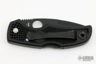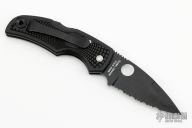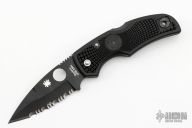 This Native folder has a black spear point serrated blade with a notched thumb rest. Includes a black handle complemented by black stainless steel hardware. Has a little wear on the edges of the clip, otherwise excellent condition.