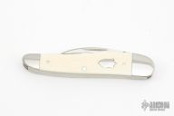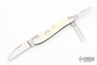 This 3-Blade Whittler features hand rub satin finished blades with nail nicks. The handle has 416 stainless steel bolsters with integral liners, mammoth ivory covers with a stainless steel escutcheon, stainless steel springs. Comes with a zippered case. Excellent condition.