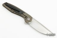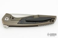 This Tuff Knives designed Custom Knife Factory Switch, features a drop point blade with notched flipper tab and thumb ramp. The handle is comprised of titanium scales and has textured carbon fiber inlays on both sides. It has zirconium backspacer, pivot collars, and tip up clip. Stainless steel lockface insert. Comes with CKF Velcro case. Has some scuffs and scratches on the frame. Great condition otherwise.  One of 250
