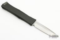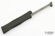This Exodus by Microtech opens out the front via the automatic push button. Closes by disengaging the leaf lock and pulling the reverse charging handle in the rear of the frame. Contoured frame grip with milled ribbing on the frame spine and belly. This Exodus features a black tanto blade. Dated 07/2001. Has a couple light scuffs, otherwise excellent condition.  Comes with a zippered case.