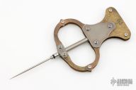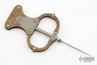 Brass and Titanium Toothpick Knuckle by Max Knives. The tooth pick can be screwed in in either direction. Comes with a velcro case. Excellent condition.