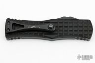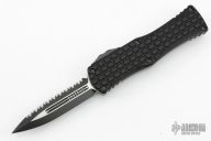 This Hera by Microtech Knives features a double-edged DLC blade with a fully serrated edge and dual fullers. The handle has a black frag aluminum frame with a tip down DLC titanium clip with ceramic ball inset. Dated 01/2023 and s/n 563. Comes with original box and papers. Excellent condition.