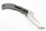 This Massad Ayoob by Spyderco features a satin finished blade with thumbhole and notched thumbrest. The handle has gray G-10 scales, stainless steel liners with a tip down reversible black stainless clip. Includes original box and papers. Excellent condition.
