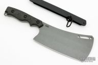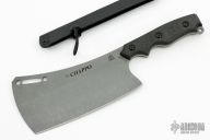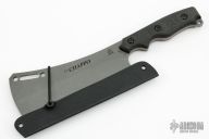 While this cleaver can be used for heavier veggie chopping tasks, it's primarily made to cut meat. With a blade length of 6” and a thickness of 3/16”, this cleaver has the weight and capability to help you take care of whatever meat processing you may encounter. It's made of 1095 high carbon steel and has TOPS' new Sniper Gray finish. It comes with a Kydex Blade cover that is held in place with an elastic shock cord.