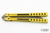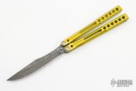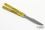 The Invictus Balisong features an acid stonewashed blade.  The handles are anodized 6AL-4V titanium with a latchless channel construction design, bushings, phosphor-bronze washers, and hardened steel tang pins.  S/N 132.  Includes original box and COA. New from maker.