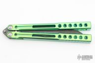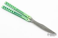 The Invictus Balisong features an acid stonewashed blade.  The handles are anodized 6AL-4V titanium with a latchless channel construction design, bushings, phosphor-bronze washers, and hardened steel tang pins.  S/N 130.  Includes original box and COA. New from maker.