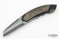 "I started making knives over 30 years ago while at University. My first knife was a big Bowie made from a car spring and I obtained a piece of stag from the local zoo for the handle. I still have and treasure that first knife. In my younger days I was very involved in martial arts yet could not buy Japanese weapons to train with, so I made my own, a short sword called a "sai". My fellow students were enthralled and I began taking orders to make more. Although having earned two university degrees, I continued to make knives part-time, but it became such a passion that I left my profession and am now a full-time knifemaking artist. I have been a member of the South African Knifemakers Guild since 1985. Today I only make folders and automatics, using the best exotic materials such as mammoth ivory, pearl, damascus and damasteel. All my folders have fileworked liners and backstraps, each folder has a jewel inlaid somewhere on the knife as well as in the thumbstud."