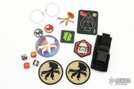 Microtech Swag Pack: four dice, two keychain, plate, five pouches and a nylon belt sheath.