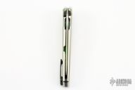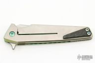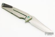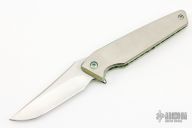 This Mark 8 by Will Moon features a hand rub satin finished blade with notched thumbrest and flipper. The handle is satin and anodized titanium with a black G10 backspacer and a carbon fiber tip up clip. Nice detent, lockup and blade seating. Has scuffs and scratches, otherwise good condition.
