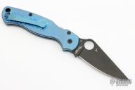 This Paramilitary 2 by Spyderco has a black clip point blade with thumb hole and notched thumb rest. The handle has custom laser engraved titanium scales and tip up clip with stainless steel liners. Comes with original box, clip and papers. Excellent condition.