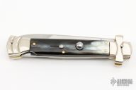 This lockback Auto by AGA Campolin has a mirror polished stainless steel spear point blade with false top edge. Handle is buffalo horn with mirror polished nickel silver bolsters, brass liners, stainless steel back spacer. Excellent condition. Dated 2016