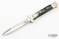 Angelo Campolin Sr. was born in 1923 in Maniago, Italy. He worked on perfecting his knife making skills before WWII and at this time made his first switchblades. After the war, in 1947 he started his company and made 30 stilettos with the marking “Angelo Campolin”. In the 1970’s Angelo’s son Gianni started to work in the company and they were specializing in folding hunting knives and also manual folding stilettos for the Robert Klaas company in Solingen Germany with their Kissing Cranes mark. In 2002 American switchblade collectors Dan Fuller, Brad West, and Tim Zinser were visiting Maniago and enjoying a few glasses of wine in a bar with Angelo Jr. and Gianni. The discussion was about a new name for some knife projects they wanted to pursue. It was Brad West that suggested the tang stamp should be AGA, for Angelo, Gianni, Angelo, thus representing three generations in the knife making business. The Campolins liked it and it stuck. In the beginning it was just a few items, but grew to the point where now there are 12 models and different scale options. The goal has been to offer quality switchblades using the old methods and traditions. Being a collector himself, Angelo Jr. knows what others like. The company headquarters has moved to Austria with production still in the original Maniago shop, as well as the others in Maniago that produce the knives for A.G.A. Campolin.