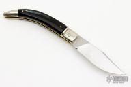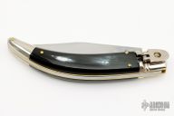 This Diana by AGA Campolin features a mirror polished blade. The handle has nickel silver bolsters and lever release, buffalo horn scales, brass liners, stainless steel backspacer. Nice action, nice lockup and blade seating. Excellent condition. Dated 2020