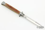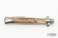 This Swivel Bolster Auto has a stainless steel blade. The handle is composed of a steel front and rear bolsters, brass liners all complemented by honey horn scales. Excellent Condition.