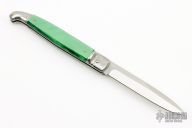 This leverlock auto by Foxinox features a satin finished blade, stainless steel bolsters, acrylic scales, stainless steel liners and backspacer. Excellent condition.