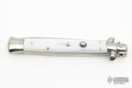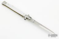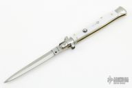 This 11" Picklock features a tumbled blade with false top edge. The handle has stainless steel bolsters, front and rear, acrylic scales, brass liners, stainless spring. Has a few light scratches, otherwise excellent condition.