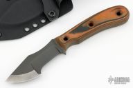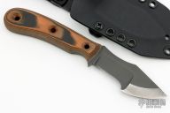 This Micro Tracker by Dave Wenger features a multi-ground blade, .166" blade stock and 1.240" blade depth, full tapered tang construction. The handle has SureTouch scales with copper pins. Comes with a kydex sheath. New from maker.