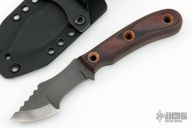 This Micro Tracker by Dave Wenger features a multi-ground blade, .166" blade stock and 1.240" blade depth, full tapered tang construction. The handle has SureTouch scales with copper pins. Comes with a kydex sheath. New from maker.