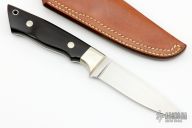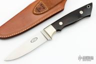 This Model 2 by Corbit Sigman features a hand rub satin finished drop point blade, .172" blade stock and .949" blade depth, full tapered tang construction. The handle has nickel silver dovetailed bolsters and cocobolo scales with nickel silver pins. Comes with a brown leather sheath. Excellent condition.