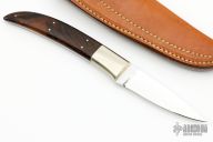 This knife by Corbit Signman features a mirror polished blade, .137" blade stock and .709" blade depth, full tapered tang construction. The handle has dovetailed nickel silver bolsters, rosewood scales with nickel silver pins. Comes with a brown leather sheath. Excellent condition. Dated 1983